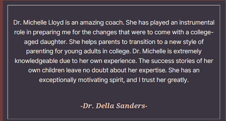 Dr. Michelle Lloyd is the host of The Ultimate Transition Success Coaching Program, a 12-month curriculum-focused, group-centered coaching initiative that prepares parents for the shift in their upcoming role as their teen transitions out of the home. This program helps you understand the range of emotions such as anxiety, fear, and uncertainty that parents may experience when their teens leave home after high school. It equips you with the skills needed to support your teen before they leave home. Ultimately, you will enjoy and appreciate the new stages you and your teen will experience
